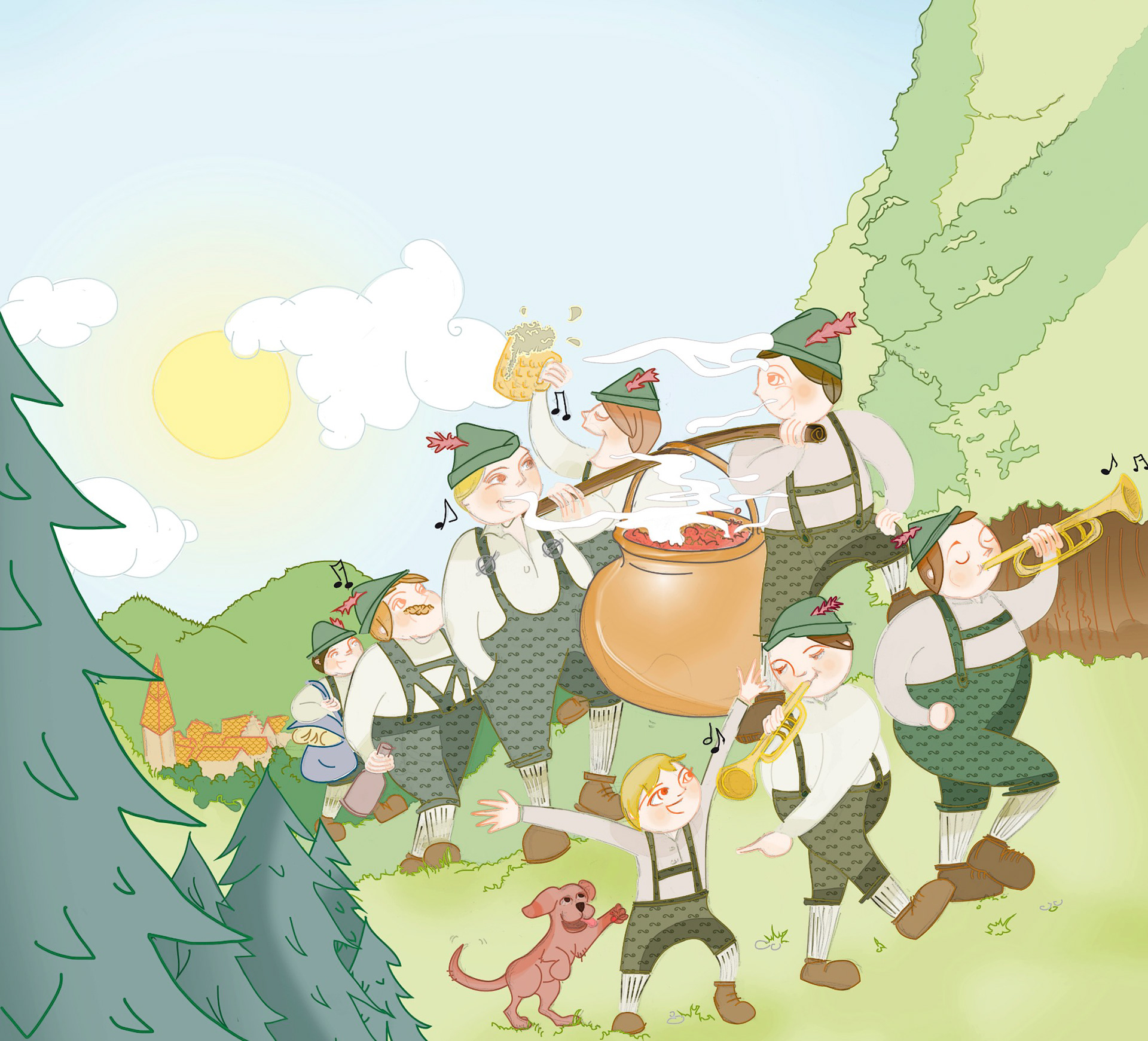 Illustration de l'origine de recettes traditionnelles allemandes pour le magazine Meine LandKüche, Burda Allemagne