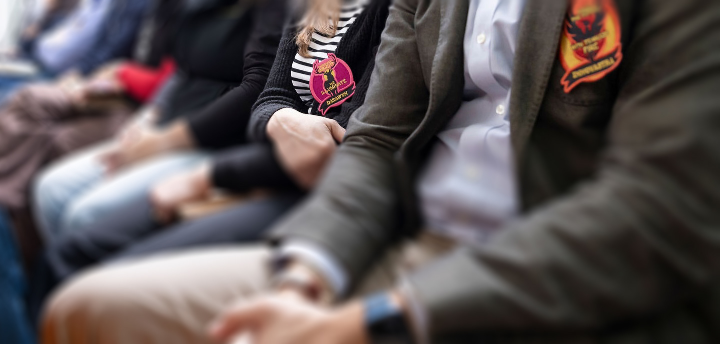 Pour le colloque de VusionGroup qui s'est tenu l'automne dernier, mon client m'a demandé une série de patchs brodés destinés à être distribués aux participants. Dans l'esprit du monde de Harry Potter, ceux-ci étaient regroupés en "maisons", et chaque maison était représentée par un visuel repris sur le patch, et sur une bannière grand format. Le résultat est féérique !